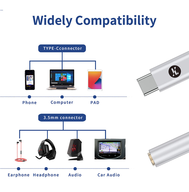 Digital Audio Adapter Type-C to 3.5mm Audio Adapter DAC Chip 32bits/384KH DSD128