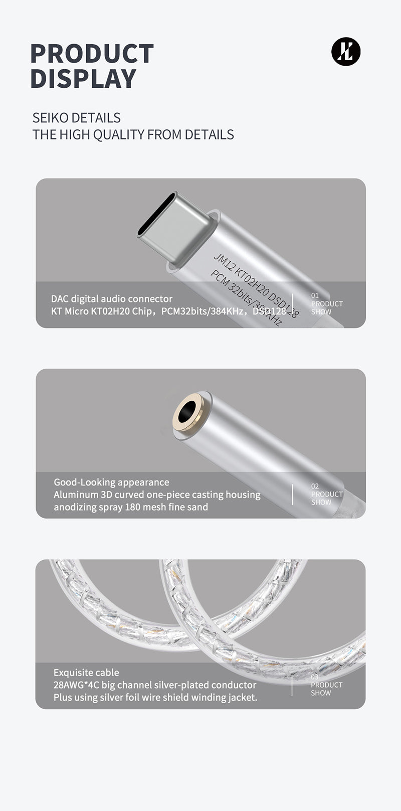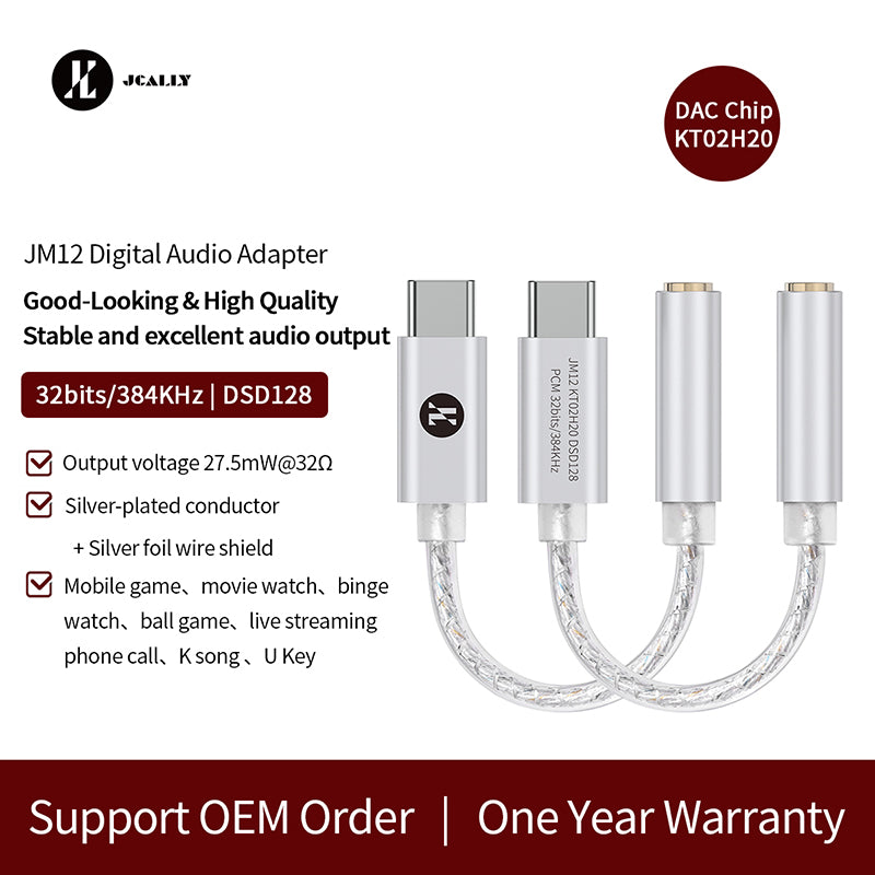JM12 is a competitive price digital audio codeadapter. Built-in KT micro KT02H20 chip, PCMsupport 32bits/384KHz,DSD128, it supports bothmicrophone and phone call function.