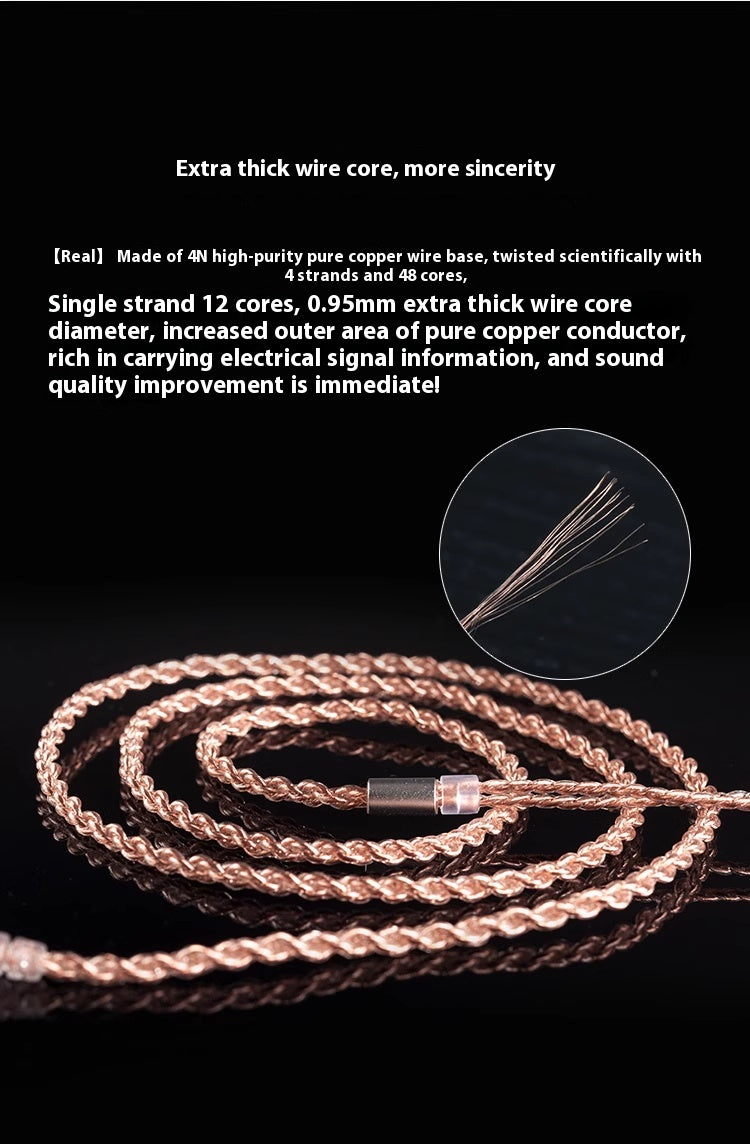 Single strand 12 cores, 0.95mm extra thick wire corediameter, increased outer area of pure copper conductorrich in carrying electrical signal information, and soundquality improvement is immediatel