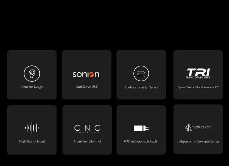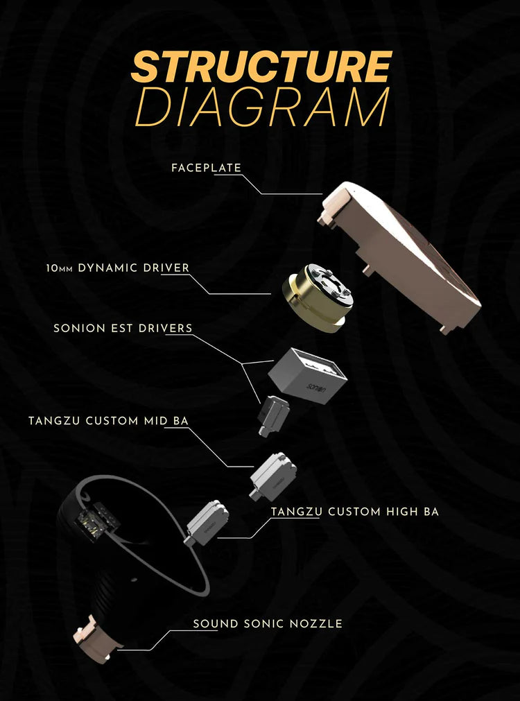• Dynamic Driver + Balanced Armatures + Sonion EST