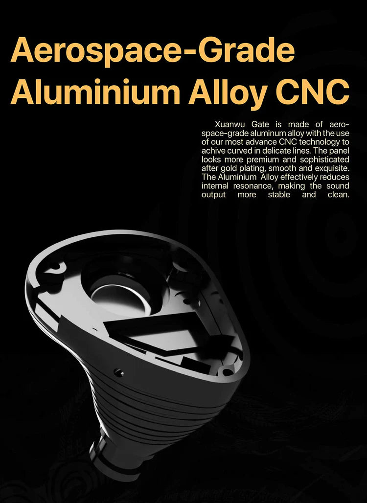 XuanwuGate is made of aerospace-grade aluminum alloy with the useof our most advance CNC technology toachive curved in delicate lines. The panellooks more premium and sophisticatedafter gold plating, smooth and exquisite.The Aluminium Alloy effectively reducesinternal resonance,making the soundoutputclean.more stable and