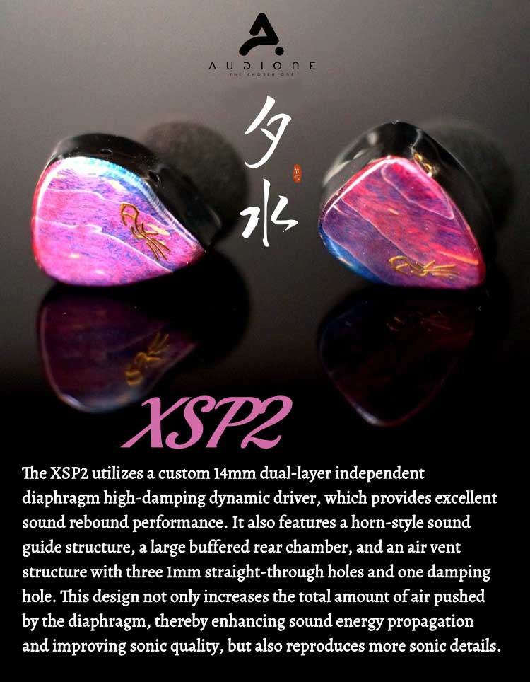 The XSP2 utilizes a custom 14mm dual-layer independentdiaphragm high-damping dynamic driver, which provides excellentsound rebound performance. It also features a horn-style soundguide structure, a large buffered rear chamber, and an air ventstructure with three lmm straight-through holes and one dampinghole. This design not only increases the total amount of air pushedby the diaphragm, thereby enhancing sound energy propagationand improving sonic quality, but also reproduces more sonic details.