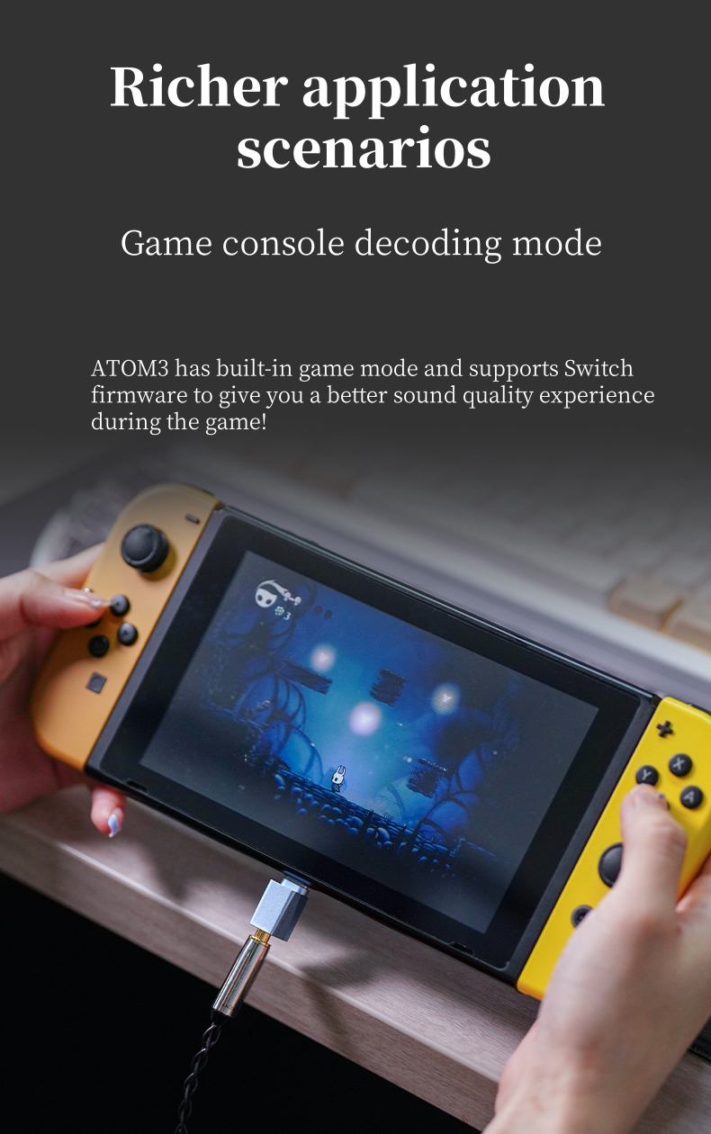 ATOM3 has built-in game mode and supports Switchfirmware to give you a better sound quality experienceduring the game!