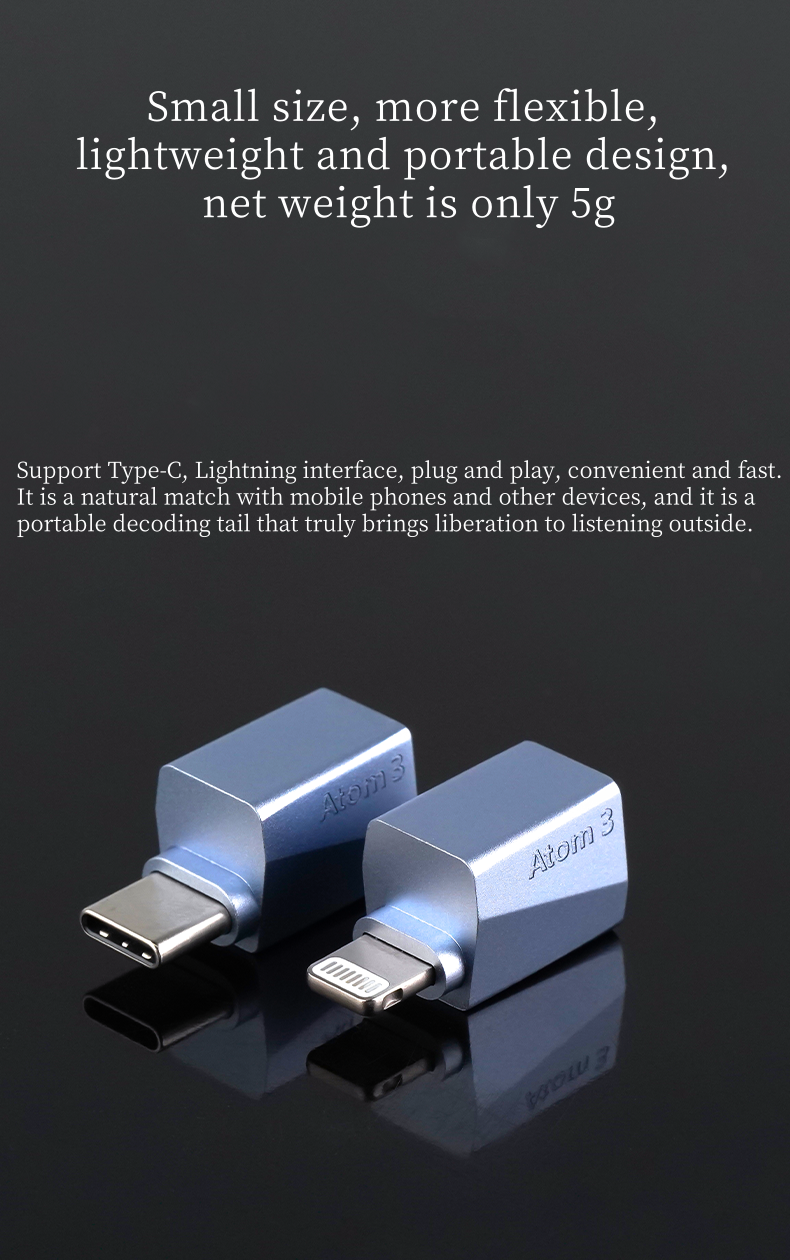 Support Type-C, Lightning interface, plug and play, convenient and fast It is a natural match with mobile phones and other devices, and it is a portable decoding tail that truly brings liberation to listening outside.