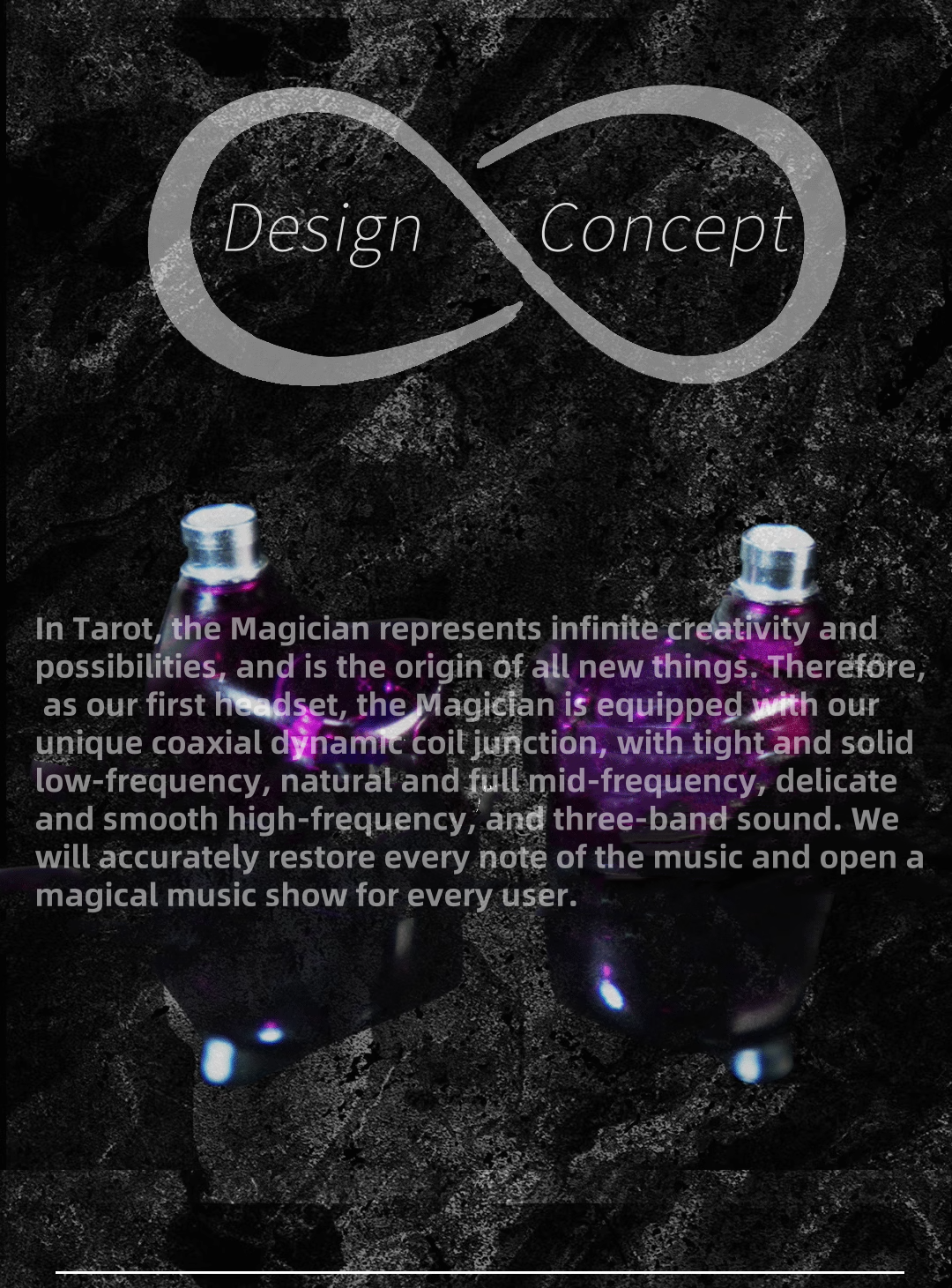 In Tarot, the Magician represents limitless creativity and possibility, the origin of all new things. Therefore, as our first headphone, the Magician is equipped with our unique coaxial dynamic driver, boasting tight, solid bass, natural, rich midrange, delicate, smooth highs, and balanced three-band sound. We will accurately reproduce every note of the music, bringing every user a magical musical feast.