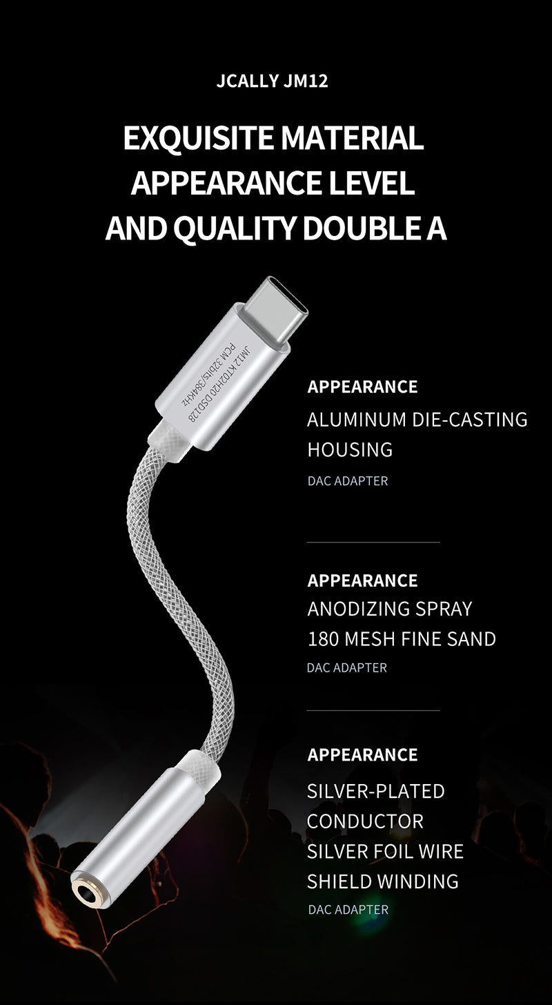 JCALLY JM12 use silver-plated conductor.Plus using silver foil wire shield windingjackIt can ensure outstanding sound andeliminate external interference.