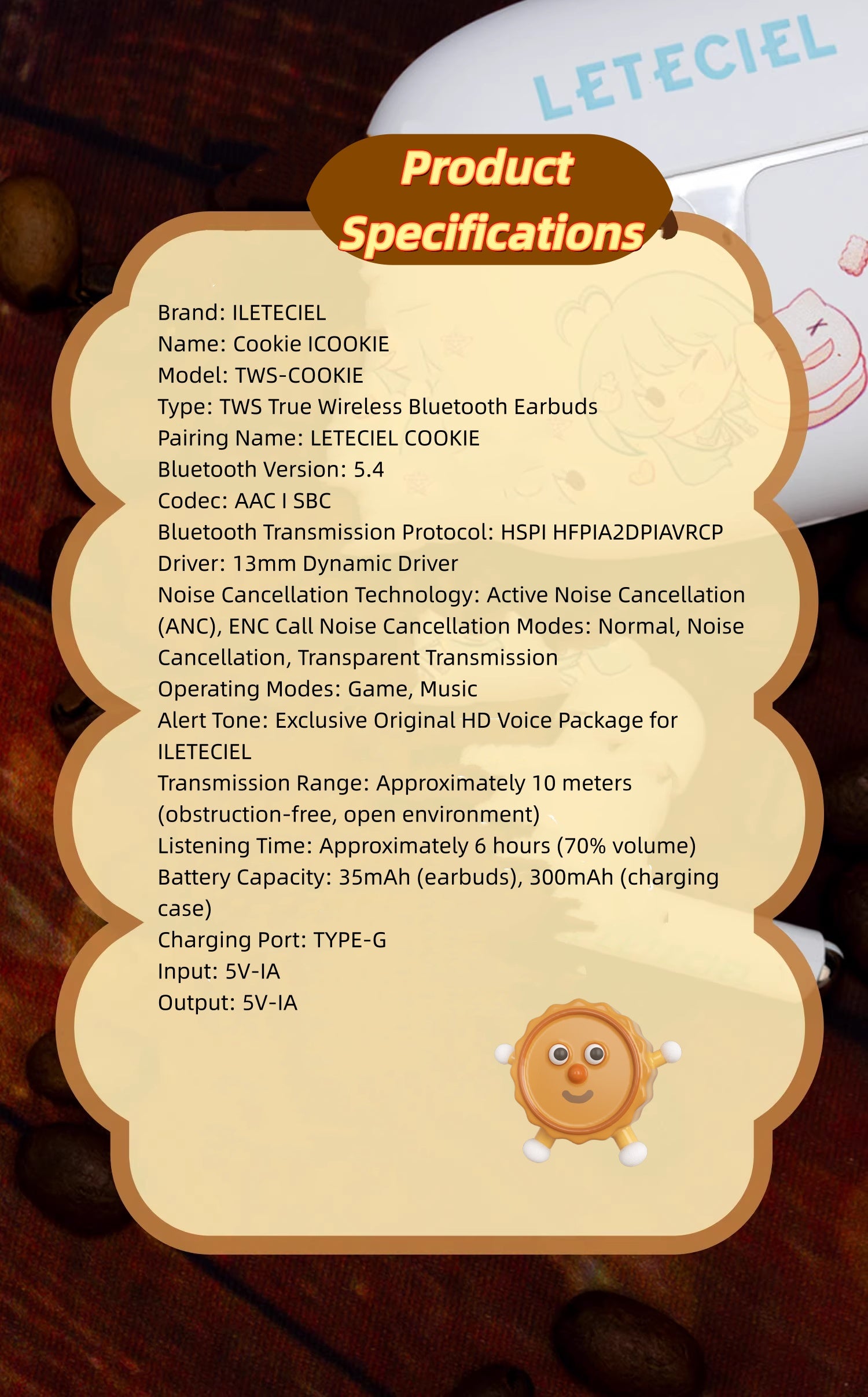 Type: TWS True Wireless Bluetooth EarbudsPairing Name: LETECIEL COOKIE