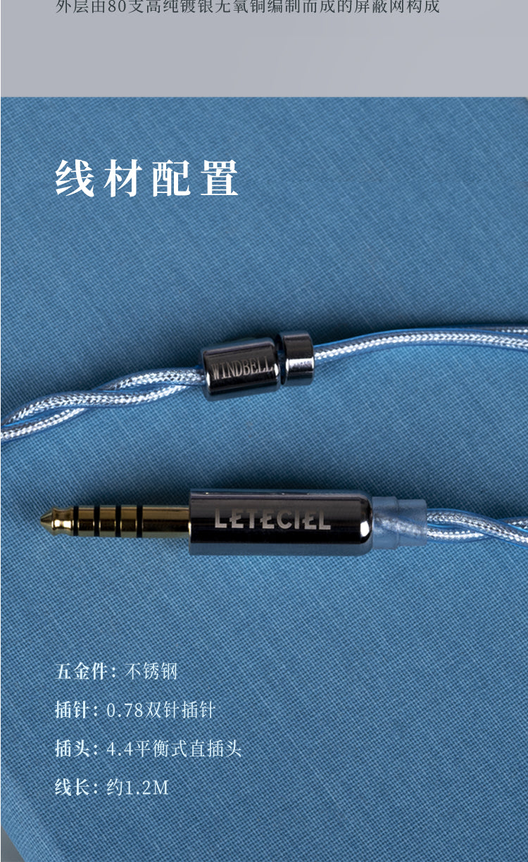 LETECIEL Windbell 3.5/4.4 mm HIFI in-ear earphone plug upgrade cable