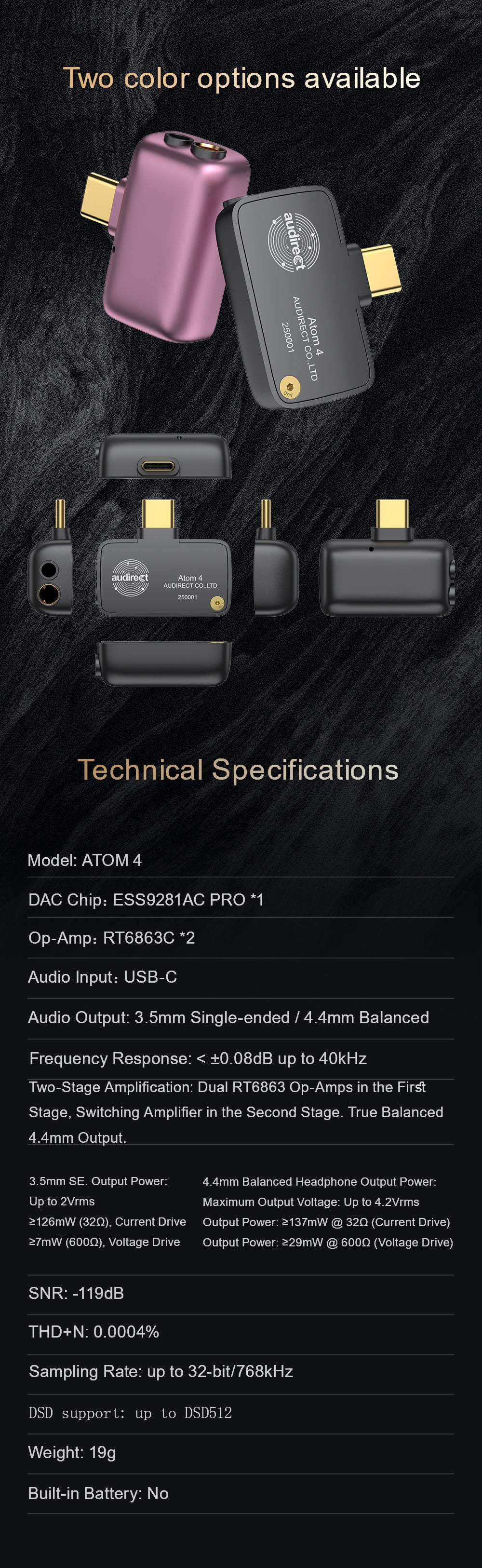 Offering both 3.5mm single-ended and 4.4mm balancedoutputs, the dual ports provide versatile compatibility with a widerange of professional audio equipment, enabling a more diverseexperience and expanded possibilities.
