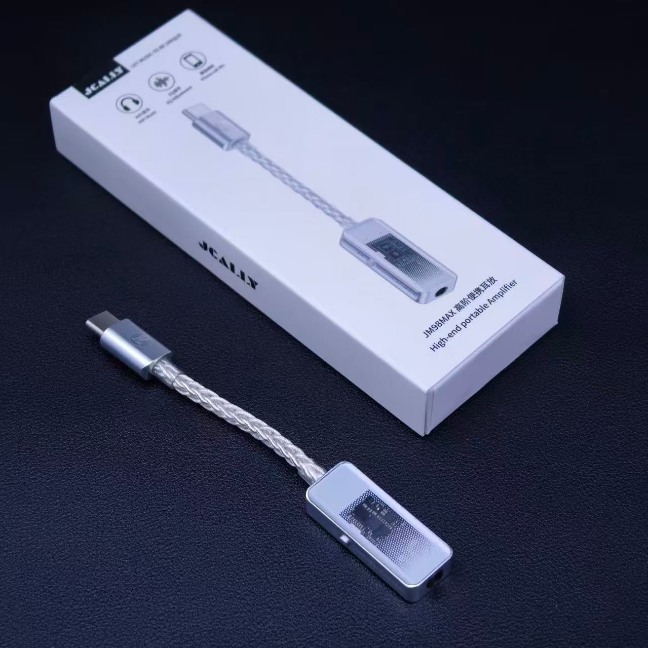Materials: The JM98MAX's shell and connectors are made of brushed aluminum alloy, while the front panel is made of mirror-polished tempered glass. The cable is made of very high-quality materials; it's not the commonly used oxygen-free copper-plated silver wire, but a copper-silver hybrid eight-strand 448-core cable, resulting in more stable signal transmission and a very tight braid, unlike other braided cables that tend to unravel. Regarding the crucial chips, it uses a CS43198 and an SGM8262, a very good dual-chip configuration with a powerful 195mW output.