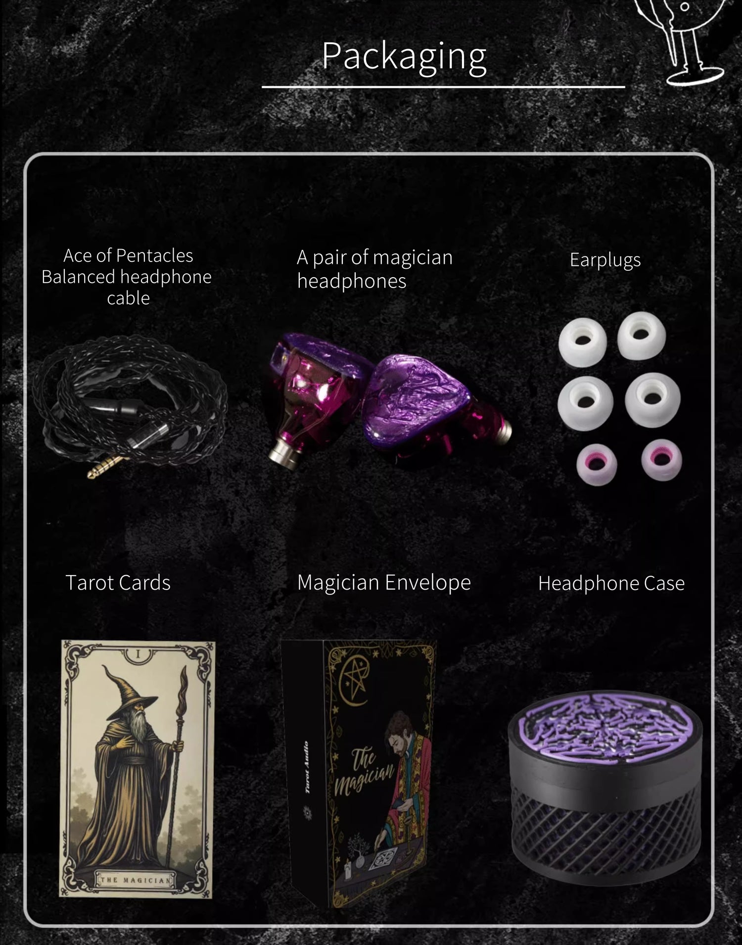 В Таро Маг олицетворяет безграничное творчество и возможности, источник всего нового. Поэтому, будучи нашими первыми наушниками, Маг оснащен уникальным коаксиальным динамическим драйвером, который обеспечивает плотные, насыщенные басы, естественные, насыщенные средние частоты, нежные, мягкие высокие частоты и сбалансированное трёхполосное звучание. Мы точно воспроизведем каждую ноту, подарив каждому пользователю волшебное музыкальное наслаждение.