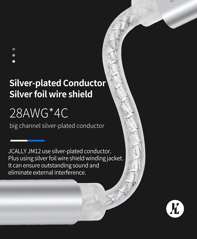 JCALLY JM12 использует посеребренный проводник. Кроме того, в качестве экрана для обмотки используется серебряная фольга. Это может обеспечить выдающийся звук и устранить внешние помехи.