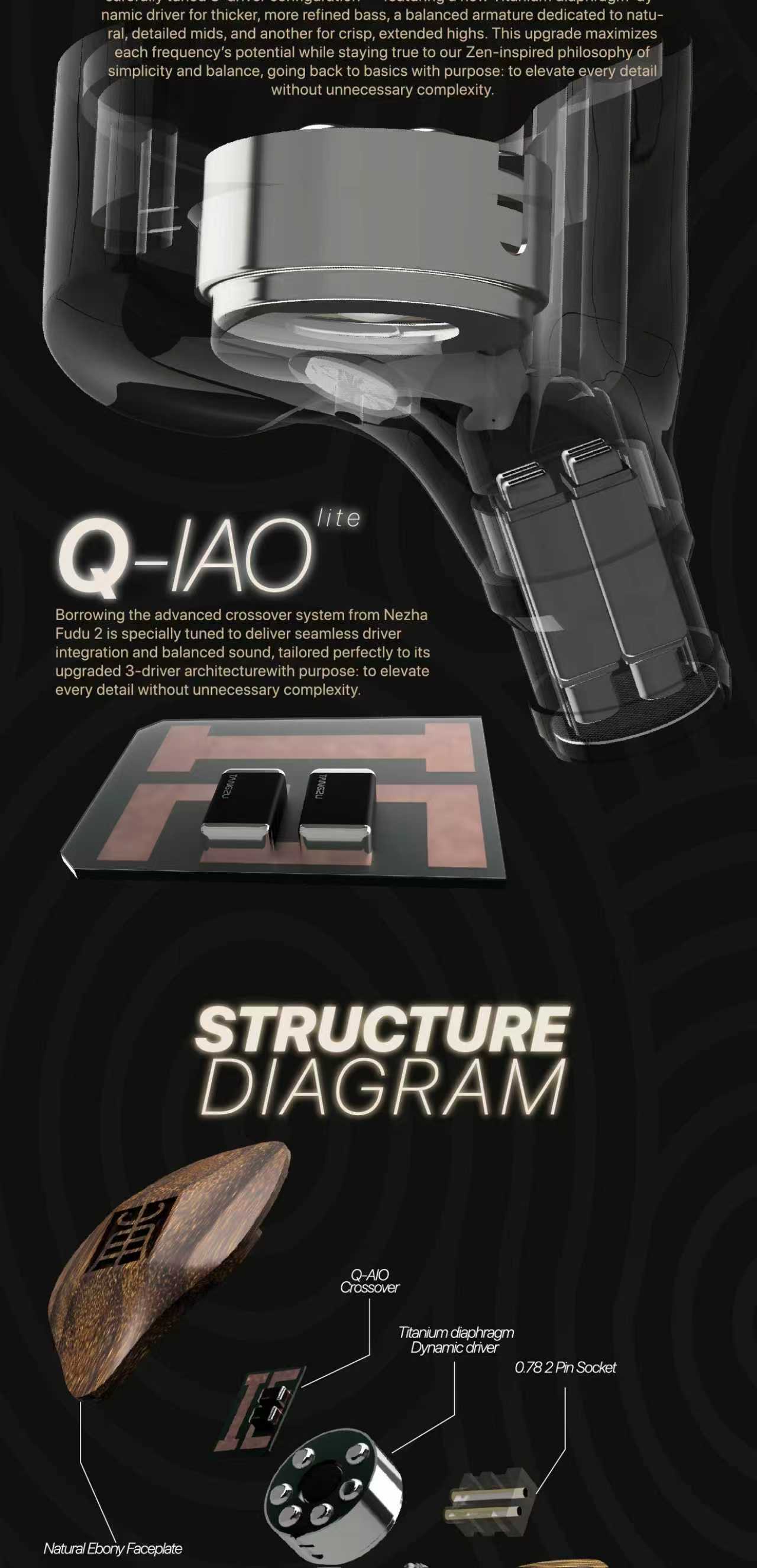 Borowing the advancad crossover system from NezhaFudu 2 is specially tuned to deliver seamless driverintegration and balanced sound, tailored perfectly to itsupgraded 3-driver architecturewith purpose: to elevateevery detall without unnecessary complexity.