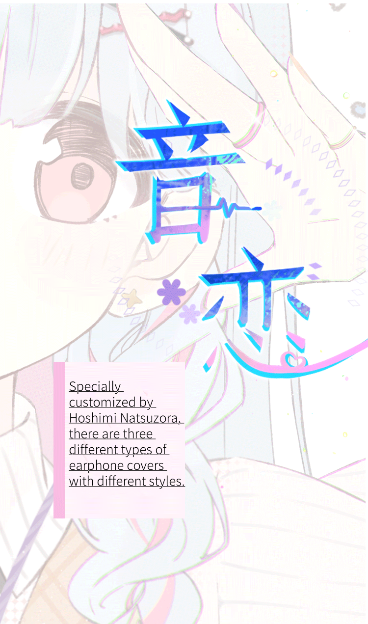 Speciallycustomized byHoshimi Natsuzora,there are threedifferent types ofearphone coverswith different styles.