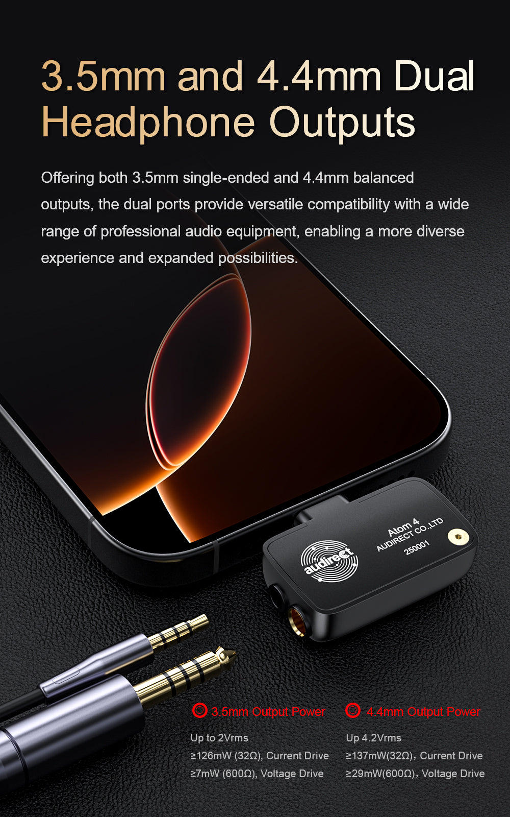 Двойные порты, оснащенные как 3,5-мм несимметричным, так и 4,4-мм сбалансированным выходами, обеспечивают универсальную совместимость с широким спектром профессионального аудиооборудования, позволяя получить более разнообразные впечатления и расширить возможности.
