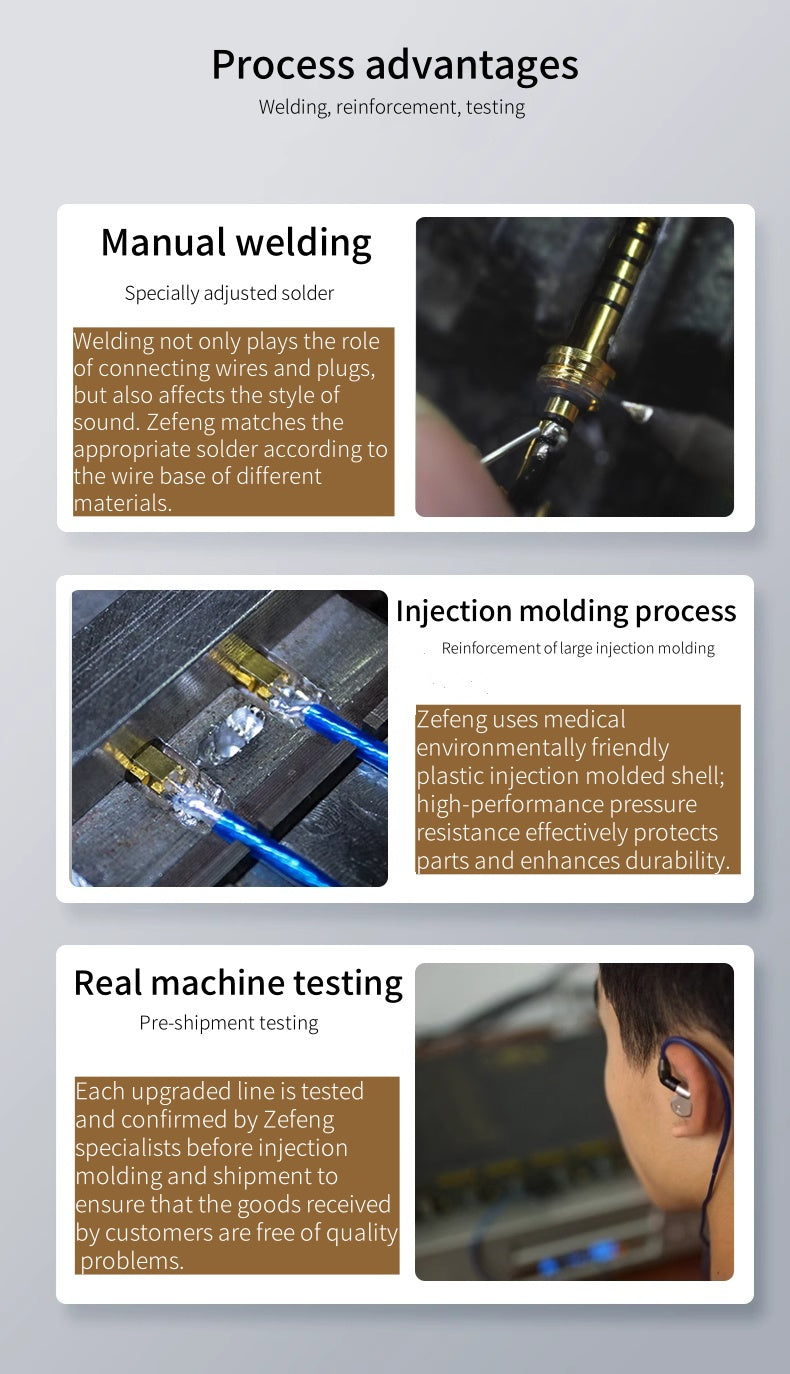 Welding not only plays the roleof connecting wires and plugs,but also affects the style ofsound. Zefeng matches theappropriate solder according tothe wire base of different materials .