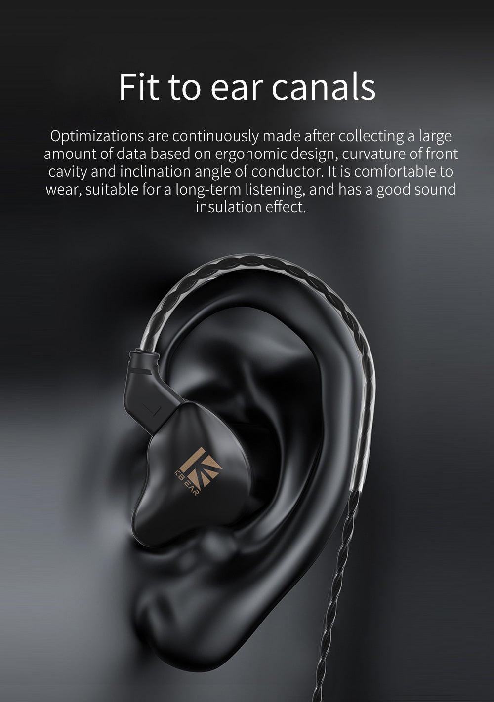 Optimizations are continuously made after collecting a largeamount of data based on ergonomic design, curvature of frontcavity and inclination angle of conductor. lt is comfortable towear, suitable for a long-term listening, and has a good soundinsulation effect.
