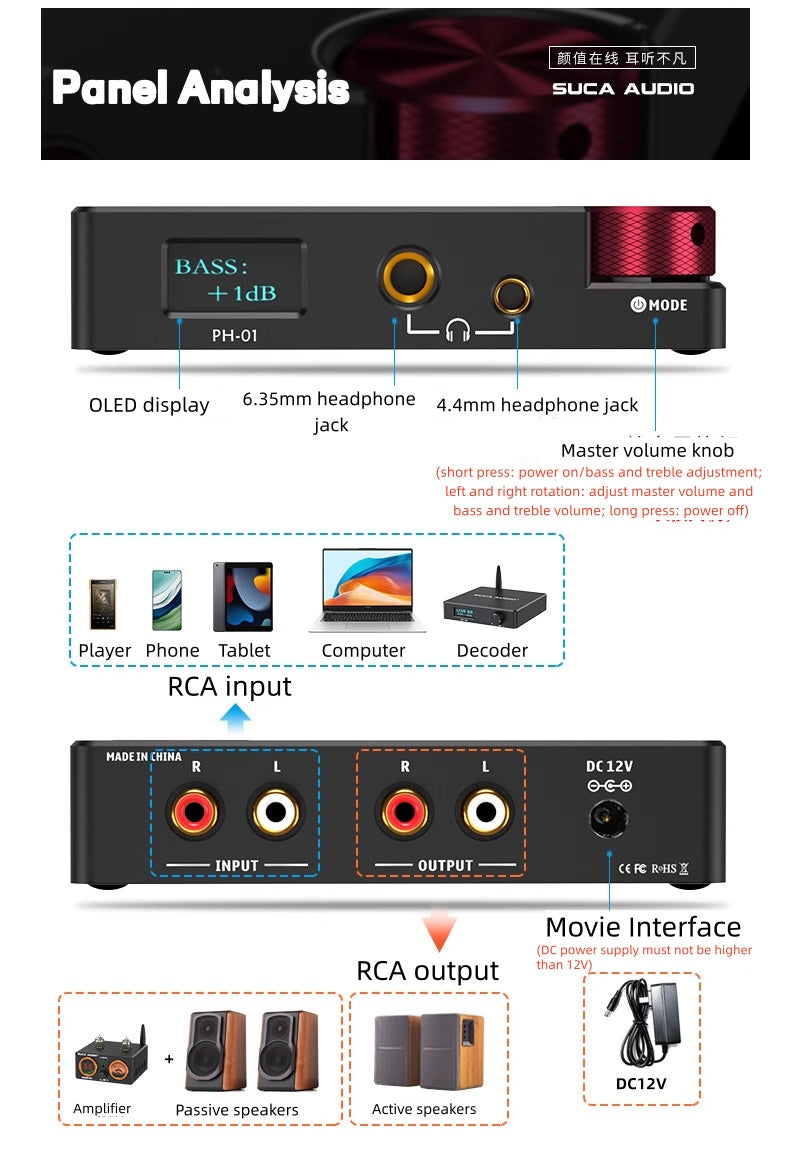 Headphone impedance matching ranges from 16-3000, easily drivingmainstream headphones. The single-ended and balanced jacks deliverrich detail, clear, enjoyable sound, and a long-lasting, memorablesound.