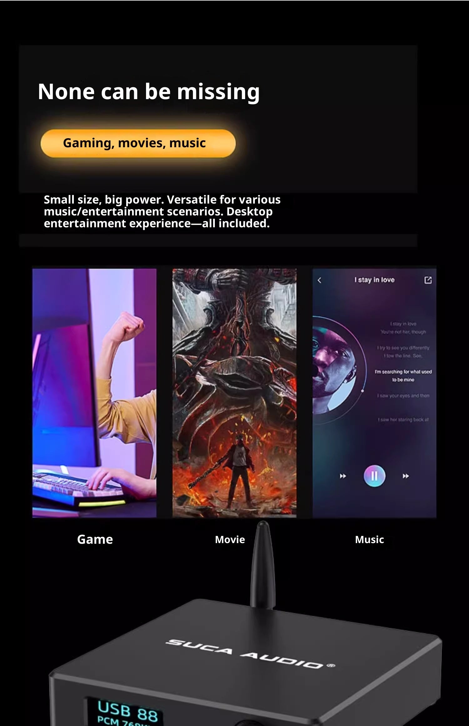 Small size, big power. Versatile for various music/entertainment scenarios. Desktop entertainment experience-all included.